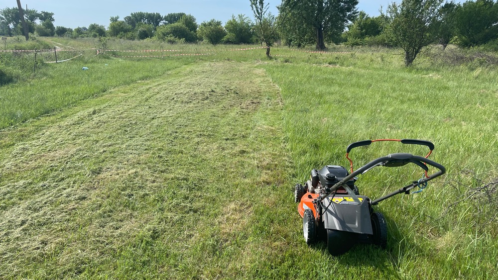 Un alt aspect important este funcționarea pe bază de benzină. Este un mare avantaj în zona mea deoarece nu am prize în grădină, iar autonomia oferită de rezervorul de 1 litru este suficientă pentru a tunde până la 800-900 mp lejer, fără realimentare. Motorul se pornește ușor și funcționează destul de silențios pentru o mașină pe benzină, iar transmisia manuală îmi oferă control bun asupra vitezei și puterii aplicate.