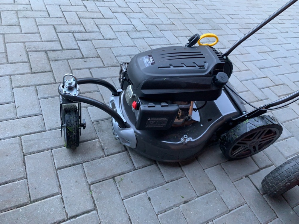 Mașina este robustă, cu o construcție solidă, iar gripul mânerului reglabil facilitează găsirea poziției optime pentru utilizator. Am apreciat foarte mult manevrabilitatea oferită de cele 3 roți, mai ales pe zone cu iarbă înierbată mai des și în pante blânde. Motorul pornește cu oarecare efort, dar după ce se aude primul zgomot, merge constant și fără probleme majore. Am reușit să tund o suprafață de aproximativ 600 mp fără să golesc cosul colector de fiecare dată, ceea ce e un avantaj net pentru productivitate.